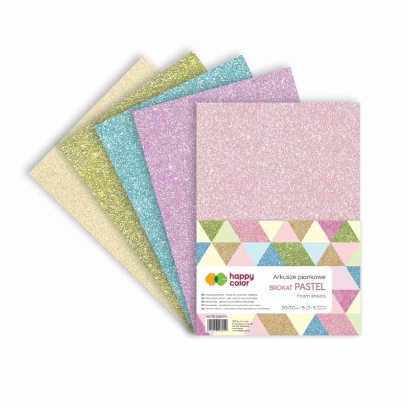 Arkusze piankowe brokatowe pastelowe 20x29cm mix kolorów 5ark