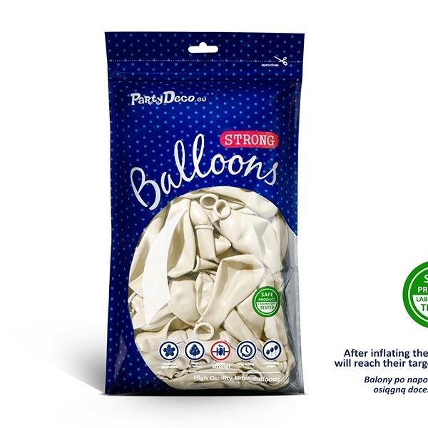 Balony PARTYDECO STRONG METALLIC 30 cm metaliczne białe METALLIC PURE WHITE 1szt.