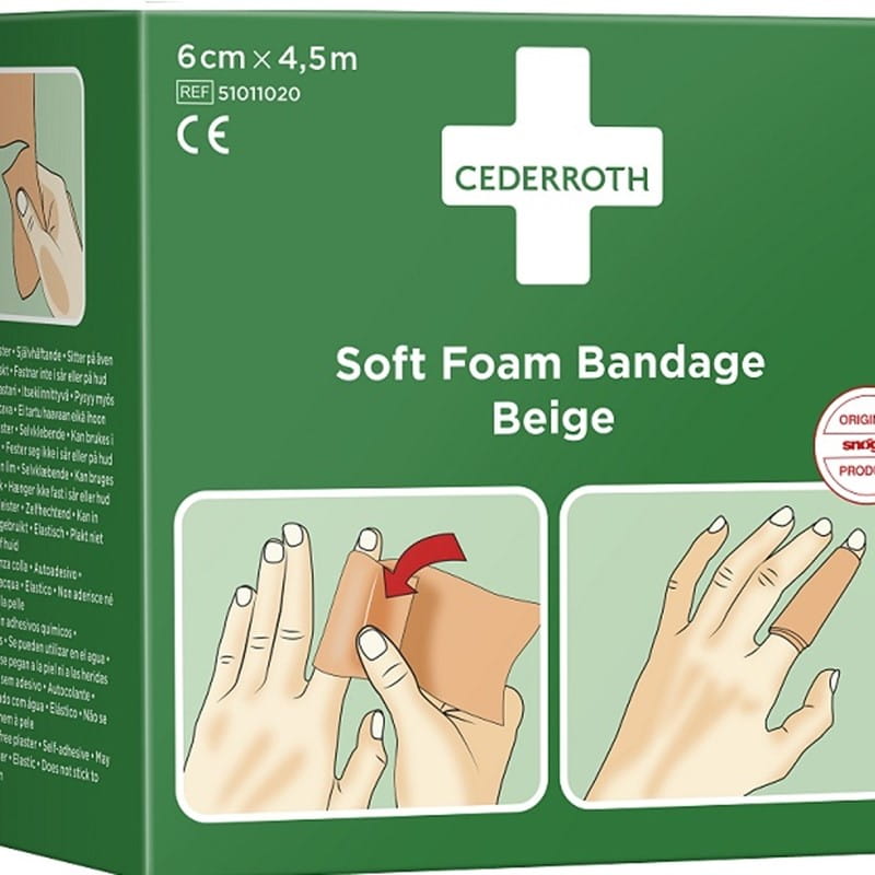 • Beżowy bandaż piankowy Cederroth REF 51011020 to elastyczny, samoprzylepny, bezklejowy plaster opatrunkowy wykonany z pianki poliuretanowej bez lateksu