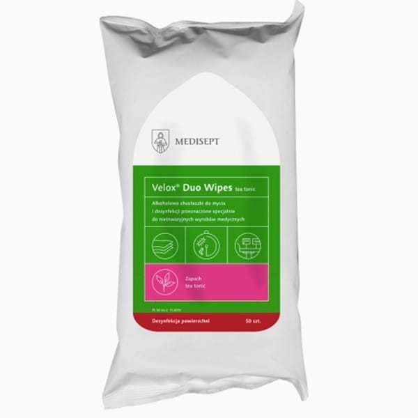 Veloxreg; Medi Wipes to chusteczki do mycia i szybkiej dezynfekcji małych powierzchni w obszarze medycznym, domach opieki, sanatoriach, salonach fitness i SPA, salonach fryzjerskich, kosmetycznych, gabinetach masażu, przedszkolach, szkołach oraz do dezynfekcji powierzchni mających kontakt z żywnością. Zalecane do małych powierzchni sprzętu medycznego: łoacute;żek i foteli zabiegowych, łoacute;żek, aparatury medycznej i operacyjnej oraz do dezynfekcji końcoacute;wek stomatologicznych przed procesem sterylizacji oraz łyżek protetycznych i wyciskoacute;w silikonowych. Dezynfekują powierzchnie zabijając w 30 sekund bakterie, grzyby drożdżopodobne, prątki gruźlicy, wirusy osłonkowe (w tym Vaccinia, BVDV, SARS-Cov-2, HIV, HBV, HCV) oraz rotawirusy i norowirusy.