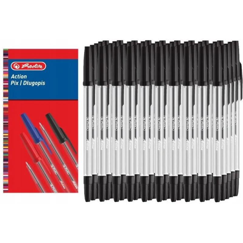 Model Herlitz Action Pix to długopis w kolorze czarnym o grubości 0,7 mm. Produkt stanowi pojedynczą sztukę i jest przeznaczony do pisania.
