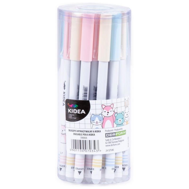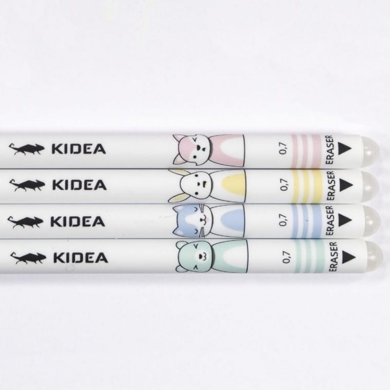 Ścieralny długopis Kidea został wyposażony w specjalny tusz, który znika pod wpływem tarcia, bez uszkadzania papieru. Kolorowy motyw zwierząt czyni go atrakcyjnym dla dzieci, a cienka końcówka zapewnia dokładność i komfort pisania. Praktyczny zarówno w szkole, jak i w domu.