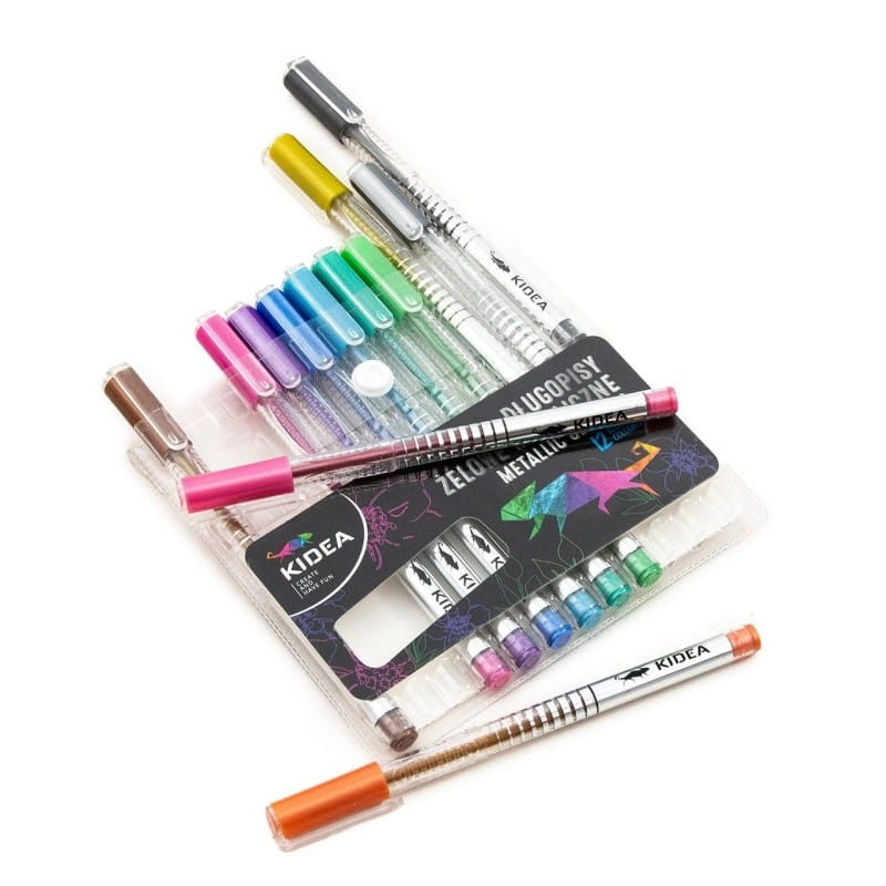 Zestaw długopisów żelowych metalicznych Kidea 12 kolorów w etui szybkoschnące