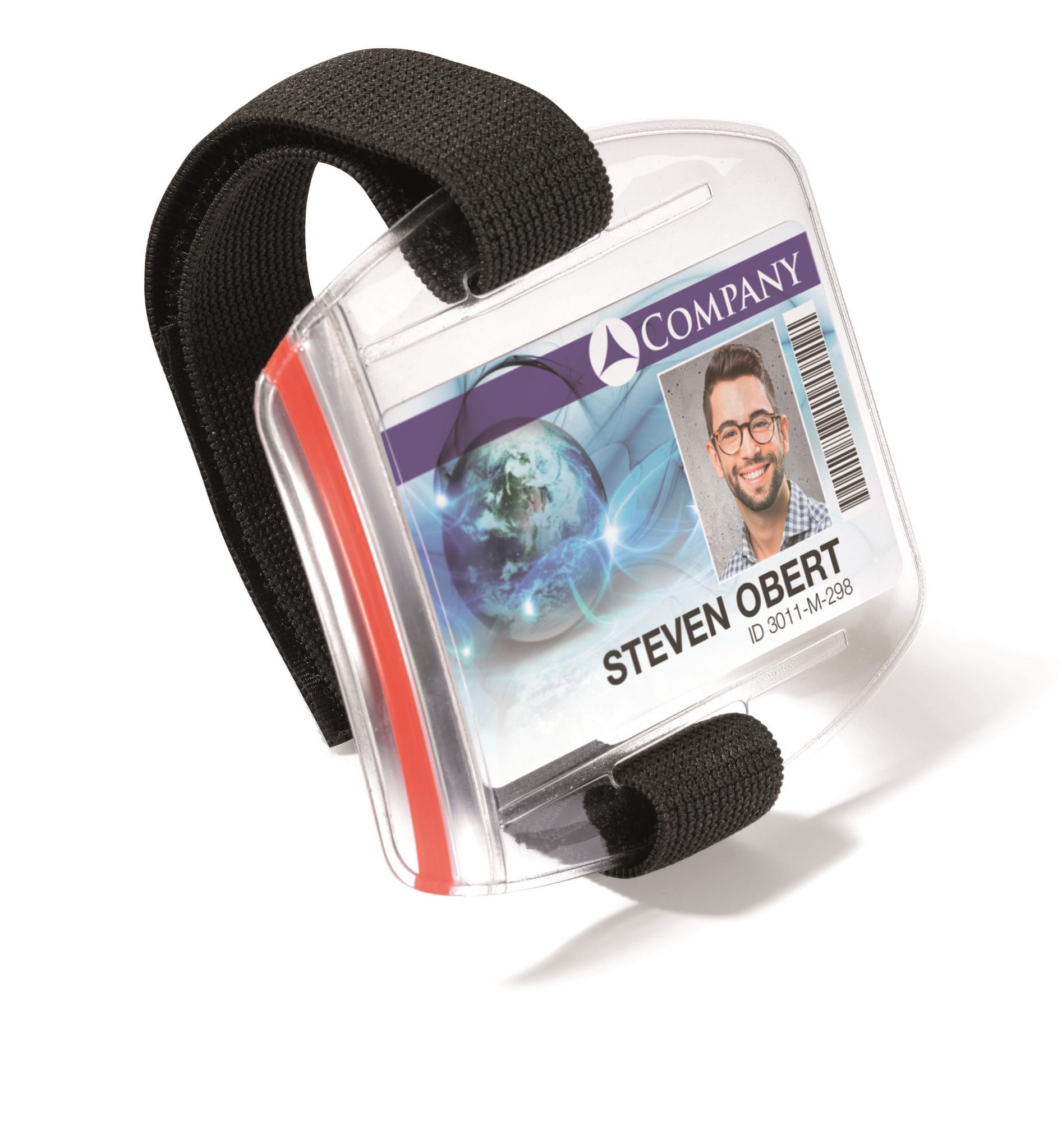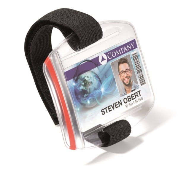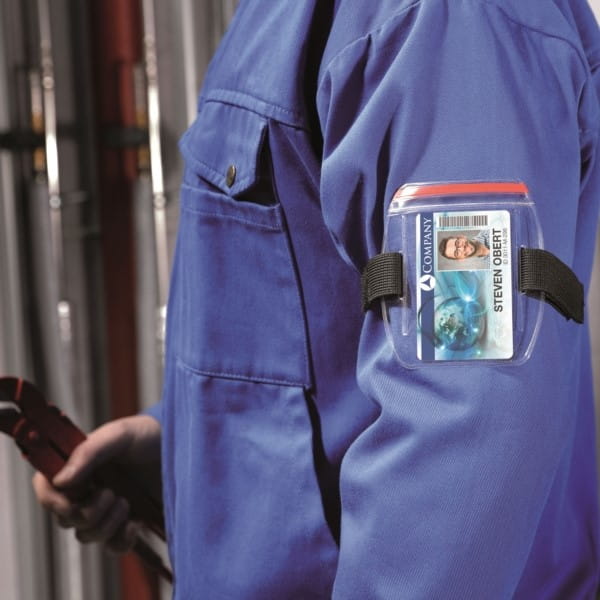 Etui do kart identyfikacyjnych z regulowanym paskiem na ramię. Karty identyfikacyjne na ramieniu są dobrze zabezpieczone i dobrze widoczne, niezależne od aktywności użytkownika.