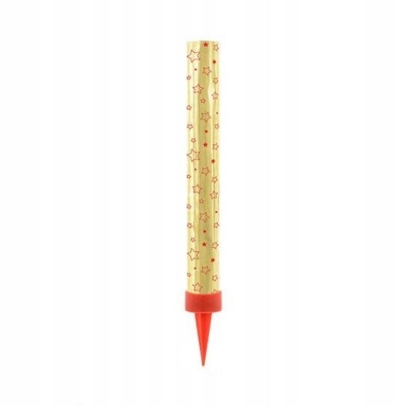 Fontanna tortowa o wysokości 12 cm i średnicy 15 mm przeznaczona jest do dekoracji wypieków okolicznościowych. Po odpaleniu emituje złoto-srebrne iskry przez około 45 sekund, tworząc efekt świetlny. Produkt znajduje zastosowanie podczas uroczystości takich jak wesela, urodziny czy imprezy okolicznościowe.