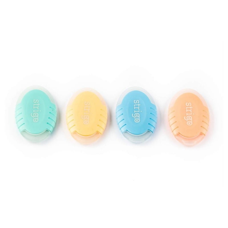 Gumka Strigo przeznaczona jest do wymazywania tuszu powstałego na bazie technologii termicznej, np. z długopisów ścieralnych. Usuwa ślad bez pozostawiania smug i nie uszkadza struktury papieru. Niewielki rozmiar sprawia, że zmieści się w każdym piórniku lub etui.