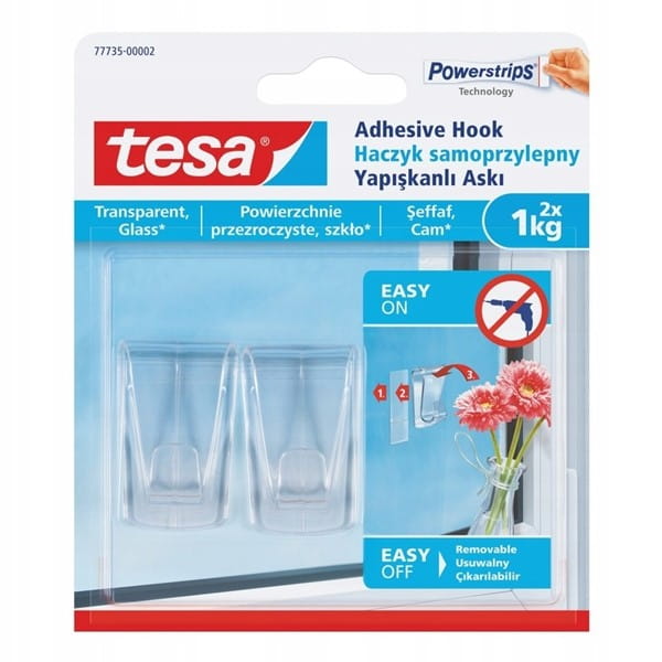 - Idealne do średnio- ciężkich dekoracji mocowanych na szkle i przezroczystych powierzchniach są samoprzylepne haczyki tesa®, wykazujące odporność na promienie UV