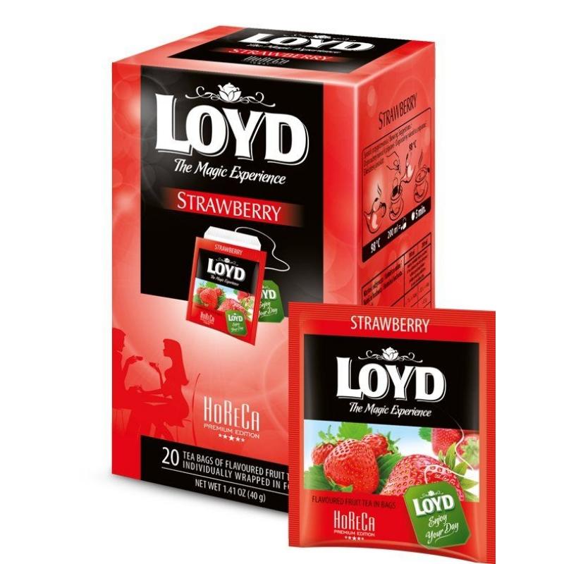 - Loyd STRAWBERRY – Herbatka owocowa ekspresowa, o smaku truskawki.