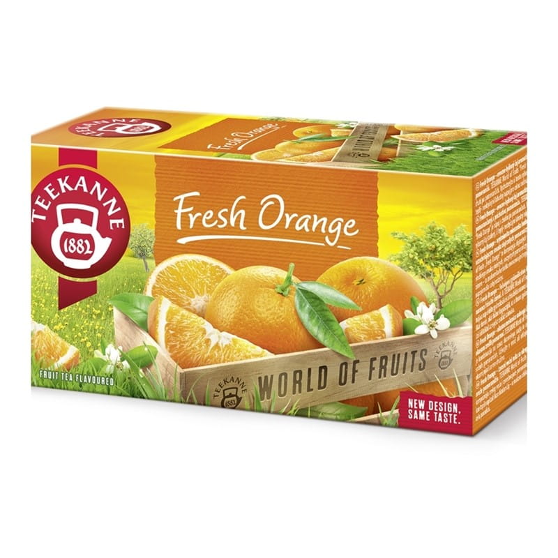 - TEEKANNE World of Fruits "Fresh Orange" to kompozycja dojrzałych w słońcu owoców i słodkiego smaku świeżych pomarańczy. Na gorąco albo na zimno - ta znakomita herbatka owocowa jest wyjątkowo smacznym napojem dla całej rodziny.
