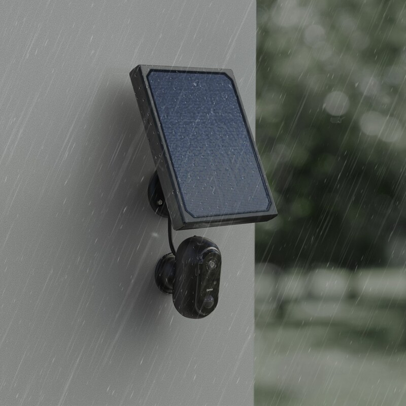 Kamera umożliwia monitorowanie obszarów zewnętrznych dzięki zasilaniu solarnemu i akumulatorowemu, eliminując konieczność stosowania przewodów. Funkcja detekcji ruchu uruchamia nagrywanie oraz powiadomienia, a tryb nocny zapewnia widoczność w ciemności. Dwukierunkowa komunikacja oraz zdalny dostęp przez aplikację pozwalają na kontrolę i interakcję z dowolnego miejsca.