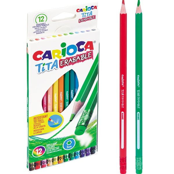 Kredki ołówkowe z gumką: - wymazywalne za pomocą umieszczonej na końcu gumki - kredki bezdrzewne, zaostrzone - miękki, odporny na złamania grafit o szerokości 3mm - klasyczny przekrój sześciokątny - 12 kolorów
