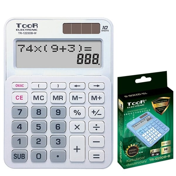 Kalkulator 10 pozycyjny dwuliniowy TOOR TR-1223DB-W biały /120-1900/