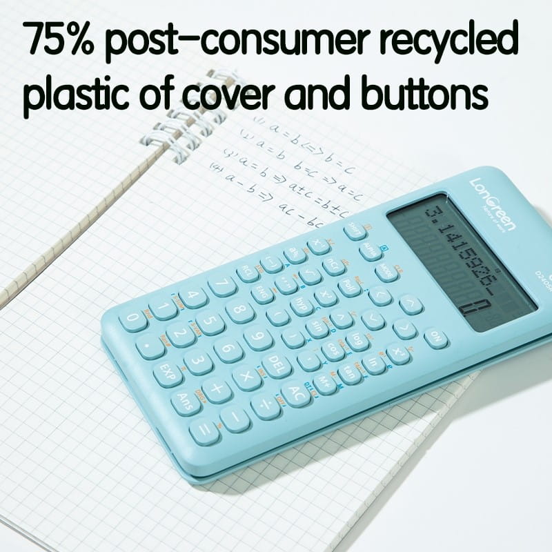Kalkulator naukowy wyposażony w 240 funkcji umożliwia realizację zaawansowanych obliczeń, w tym obliczeń statystycznych. Obudowa i przyciski wykonane w 75% z plastiku pochodzącego z recyklingu wspierają ograniczenie zużycia surowców. Intuicyjne menu przyspiesza obsługę, a magnetyczna osłona chroni urządzenie podczas przechowywania i transportu. Produkt zapakowany w opakowanie bez tworzyw sztucznych.