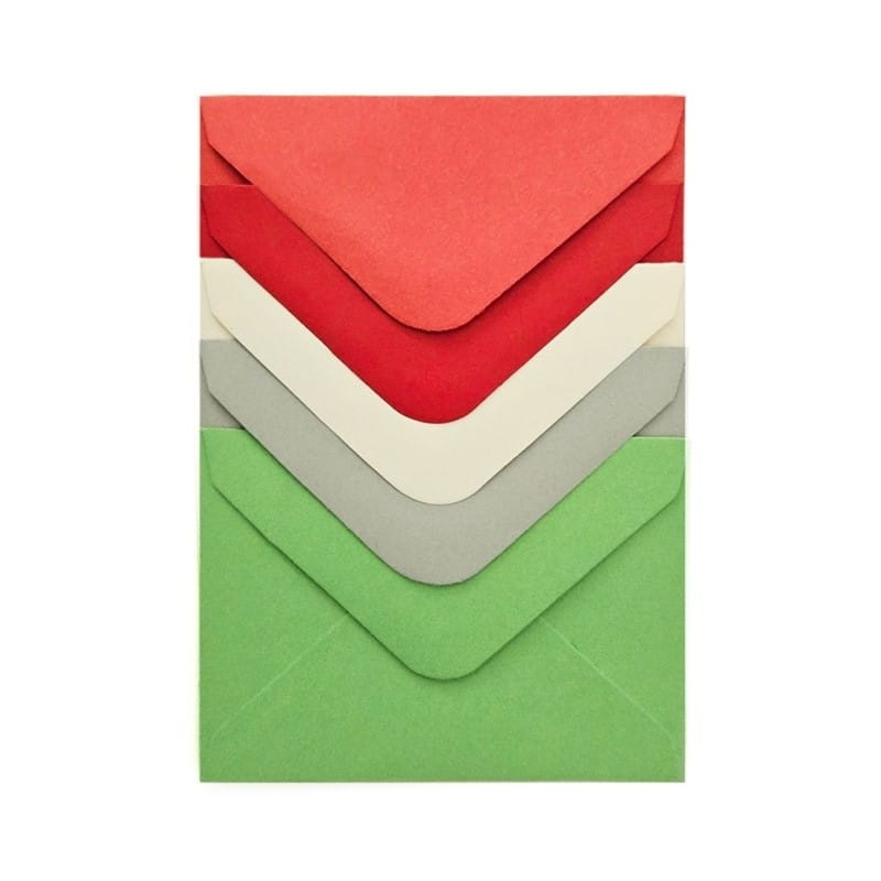Koperta ozdobna 70 x100 mm satynowa mix kolorów czerwonych i zielonych 110g/m2 10szt.