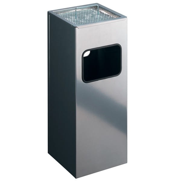 Kosz na śmieci kwadratowy metalowy z popielnicą srebrny / 333123/