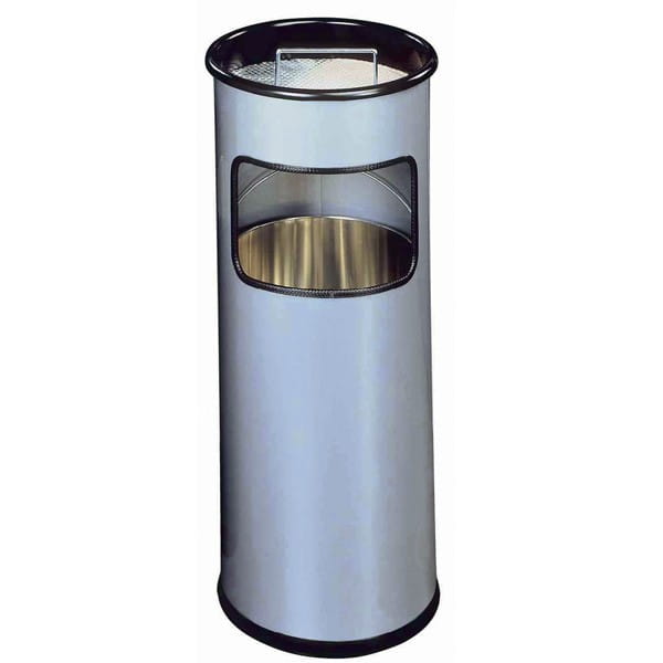 Kosz na śmieci okrągły metalowy z popielnicą srebrny /333023/
