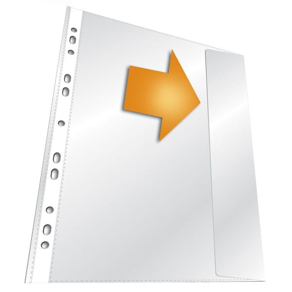 - Kieszeń posiada uniwersalne rozstawienie dziurek, co pozwala na wpięcie jej do każdego segregatora