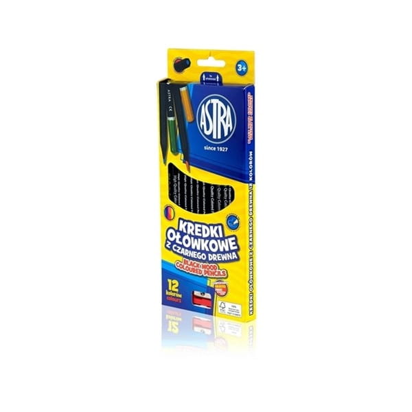 Kredki ołówkowe 12 kolorów czarne drewno ASTRA + temperówka /312114001/