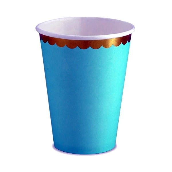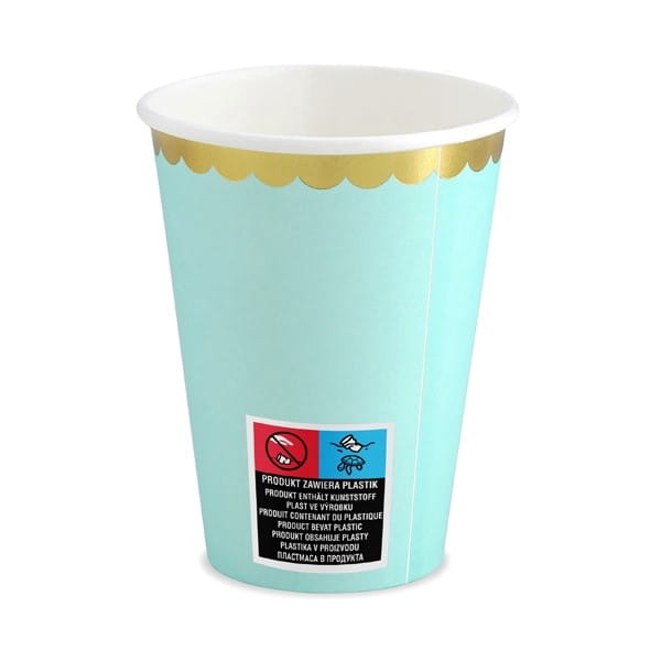 Kubki papierowe 220ml PARTYDECO miętowe ze złotym metalizowanym brzegiem 6szt. /KPP16-103-EU1/