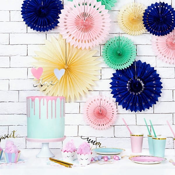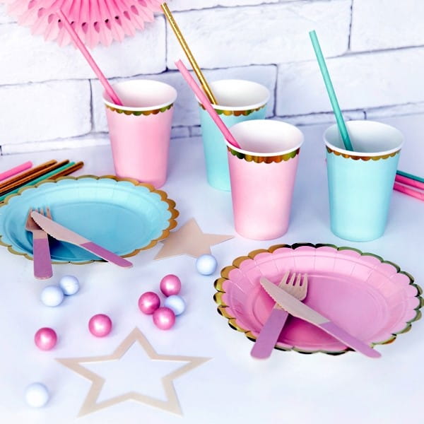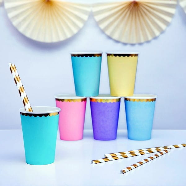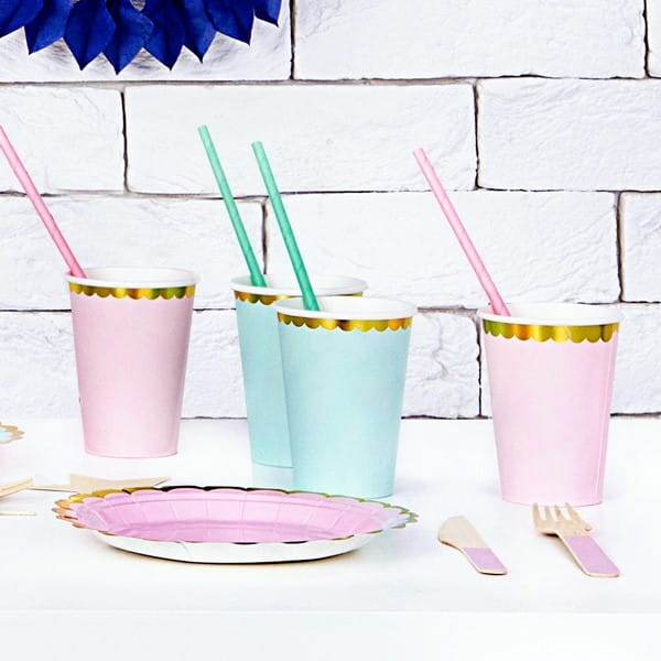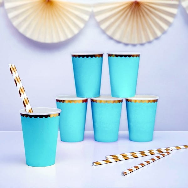 Kubki papierowe PARTYDECO miętowe ze złotym metalizowanym brzegiem