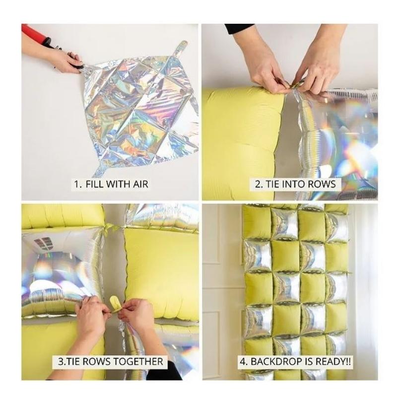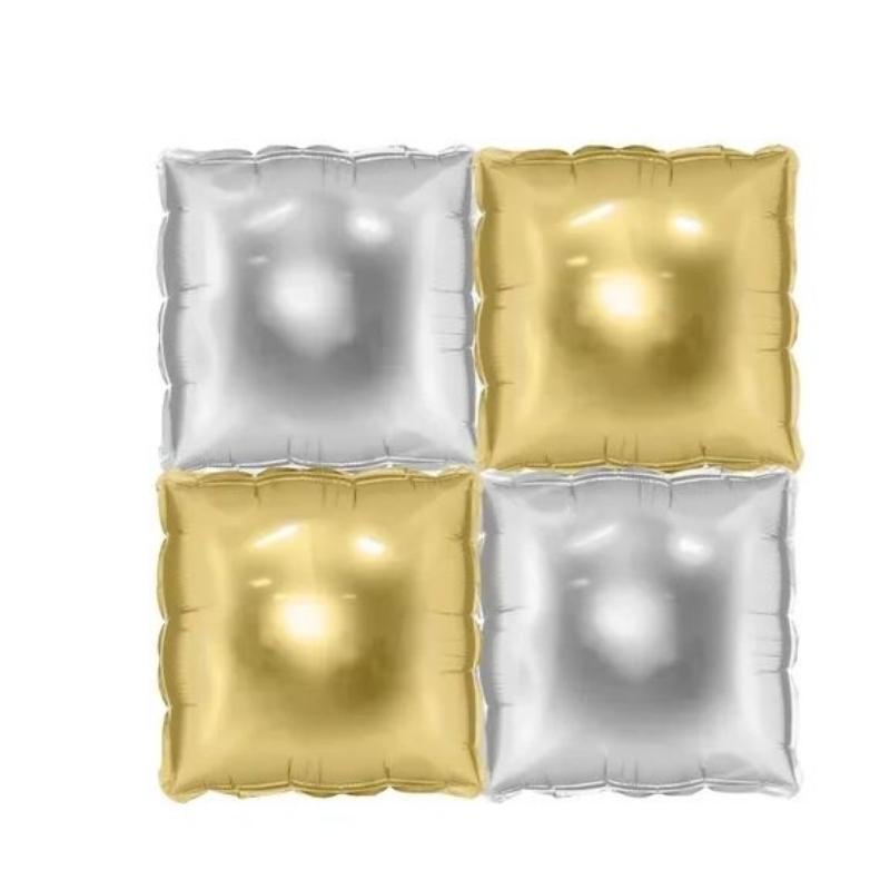 Kurtyna balonowa 35x35cm PARTYDECO dwustronna kwadratowa złoto srebrna 4szt. / FB242G-7/