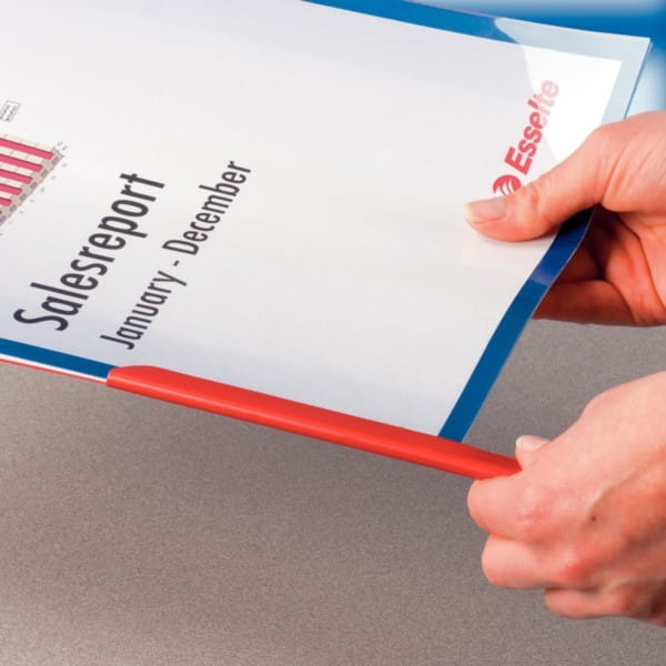 - Najszybsza i najtańsza metoda oprawy dokumentów – wystarczy złożyć dokument, wybrać okładki, następnie wsunąć grzbiet wzdłuż lewej krawędzi dokumentu i gotowe