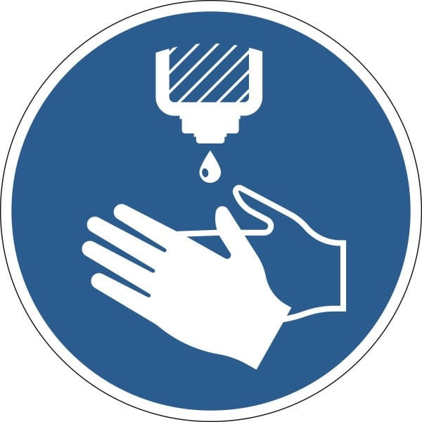 Naklejka podłogowa do znakowania "ZDEZYNFEKUJ RĘCE" DURABLE śr. 430mm x 0,2mm odklejalna niebieska biały nadruk /103806/