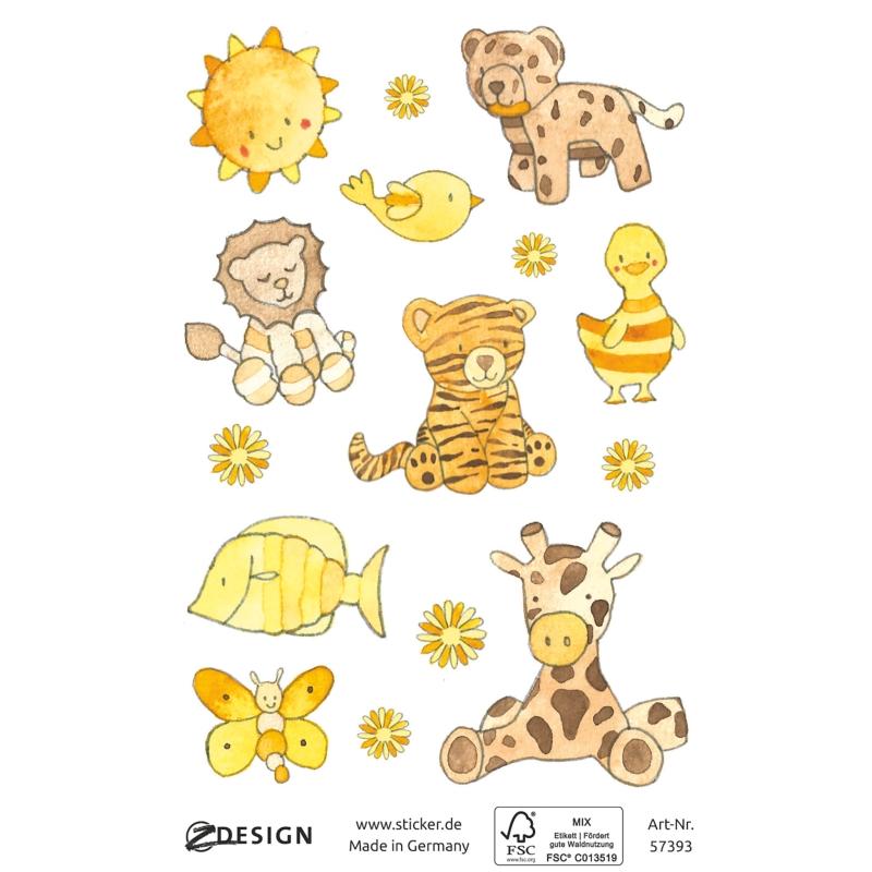 Naklejki Z-DESIGN brokatowe - żółte zwierzątka 8szt. /57393/