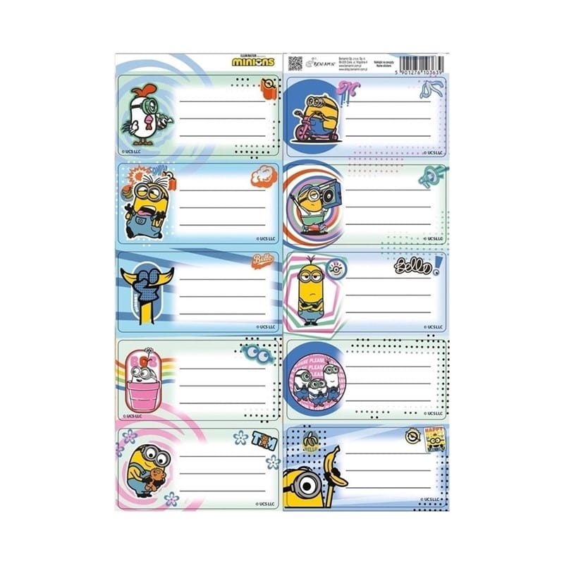 Naklejki na zeszyty BENIAMIN MINIONKI 5szt. Na arkuszu 2ark. /112563/