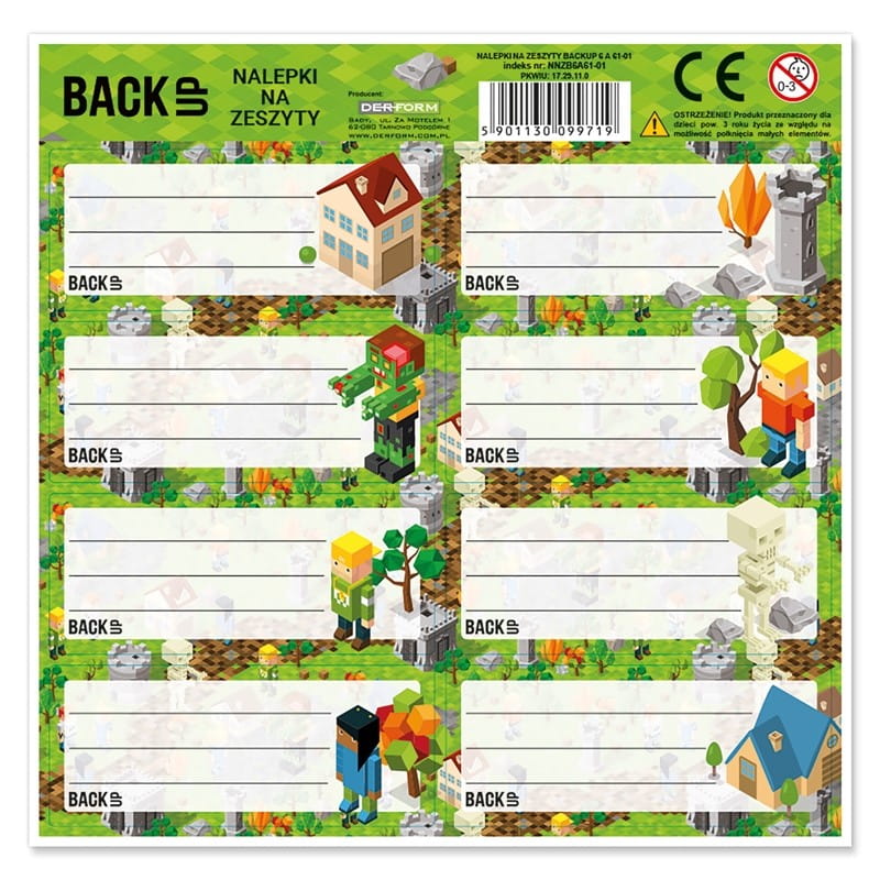 Naklejki na zeszyty DERFORM BACKUP 6 8szt. na arkuszu 1ark. /NNZB6A61/