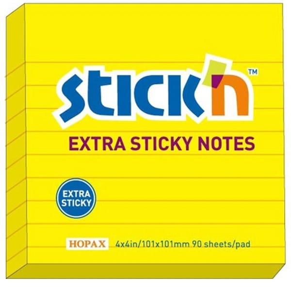 Notes samoprzylepny 101x101mm 90 kartek w linie STICKN EXTRA STICKY