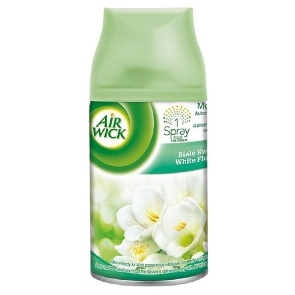 - Stosowanie AIR WICK FRESHMATIC o zapachu białych kwiatów powoduje to, iż nie ma już potrzeby ciągłego pryskania niewygodnymi sprayami.