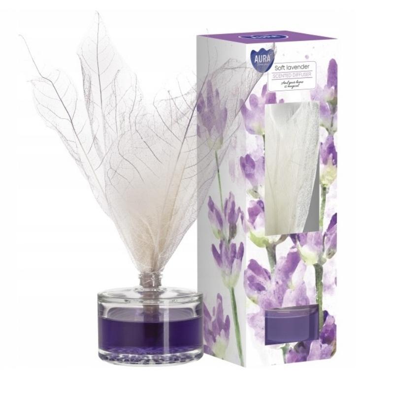 Dyfuzor zapachowy z liściem o zapachu subtelnej lawendy przeznaczony do aromatyzowania pomieszczeń. Zapewnia długotrwałe uwalnianie zapachu oraz estetyczny wygląd, dzięki czemu może stanowić funkcjonalny element wyposażenia wnętrz w przestrzeniach prywatnych i komercyjnych.