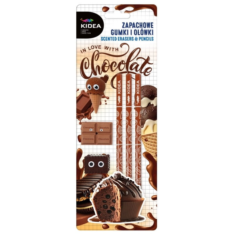 Ołówek drewniany HB KIDEA + gumka zestaw pachnąca czekolada