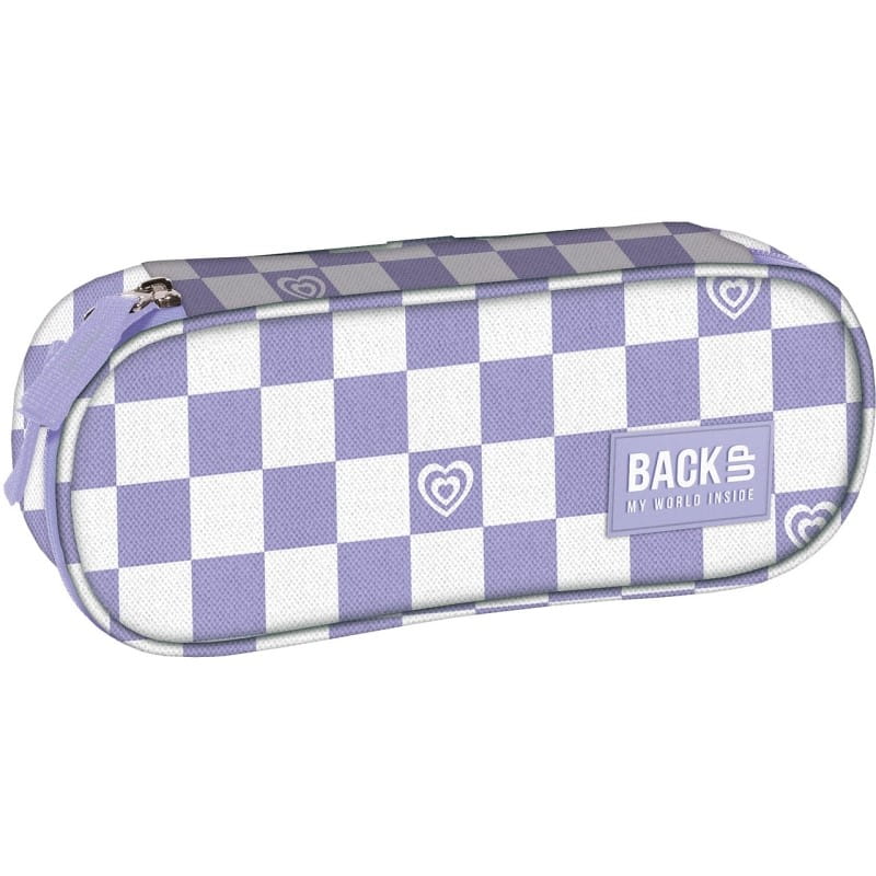 • Fioletowo-biała kratka przeplata się z drobnymi serduszkami, które dodają piórnikowi uroku.