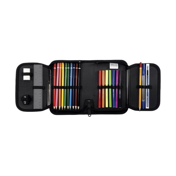 Jednokomorowy piórnik BackUP z wyposażeniem posiada: