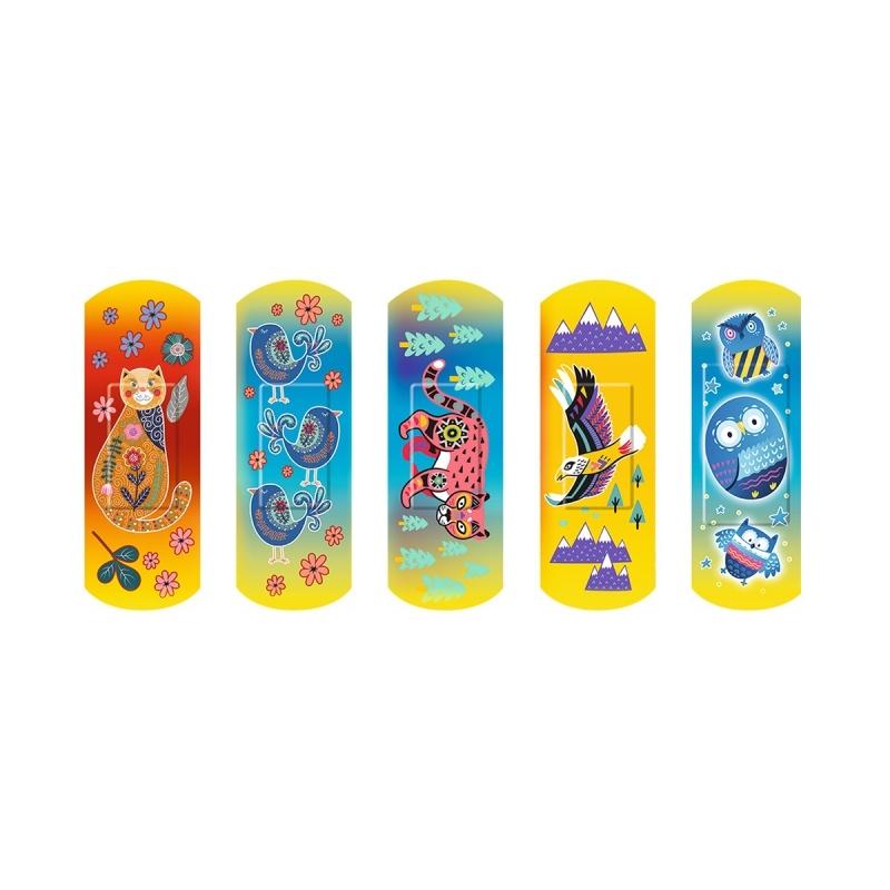 Dziecięce plastry Viscoplast ze wzorem zwierząt skutecznie chronią drobne skaleczenia i otarcia, jednocześnie rozweselając najmłodszych użytkowników kolorowymi nadrukami. Idealne do codziennego użytku w domu, przedszkolu lub szkole.