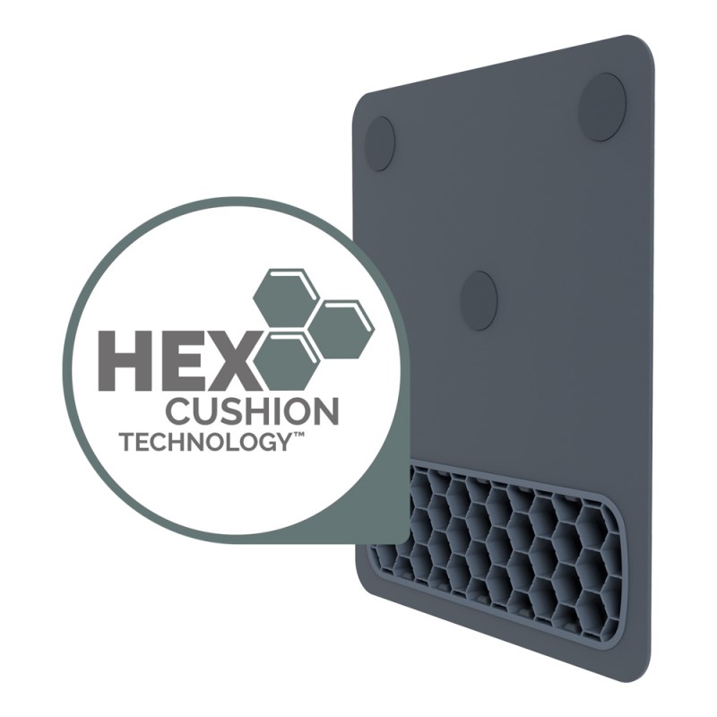 Produkt zapewnia równomierne podparcie nadgarstka dzięki technologii HEX Cushion Technology™, wspierając komfort i stabilność pracy. Powłoka antykurzowa oraz ochrona Microban® zwiększają higienę użytkowania. Konstrukcja chroni powierzchnię biurka i umożliwia płynne prowadzenie myszy.