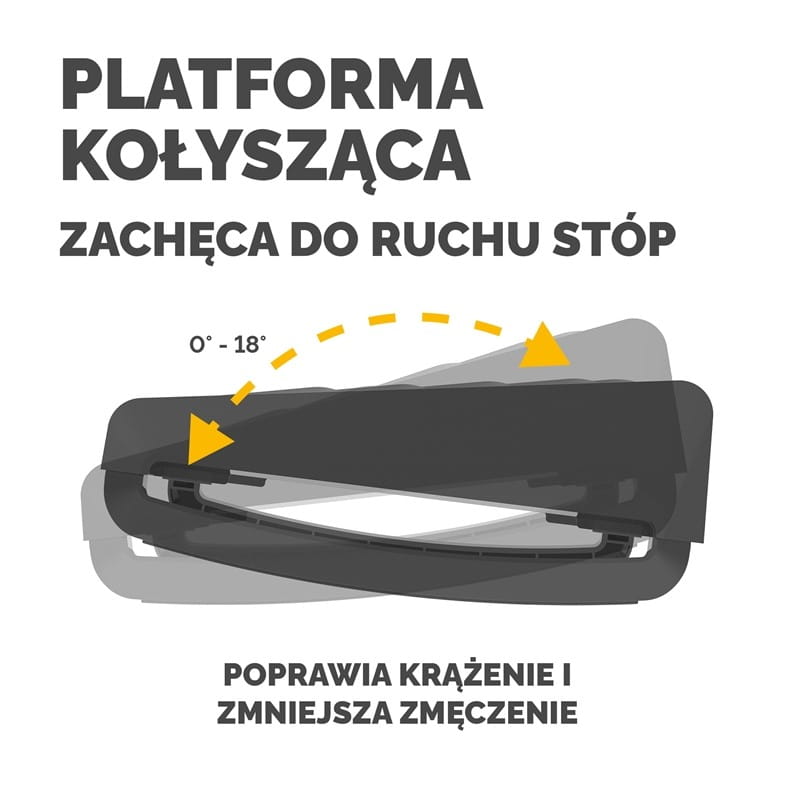 - Duża, stabilna platforma zapewniająca wygodne ułożenie stóp