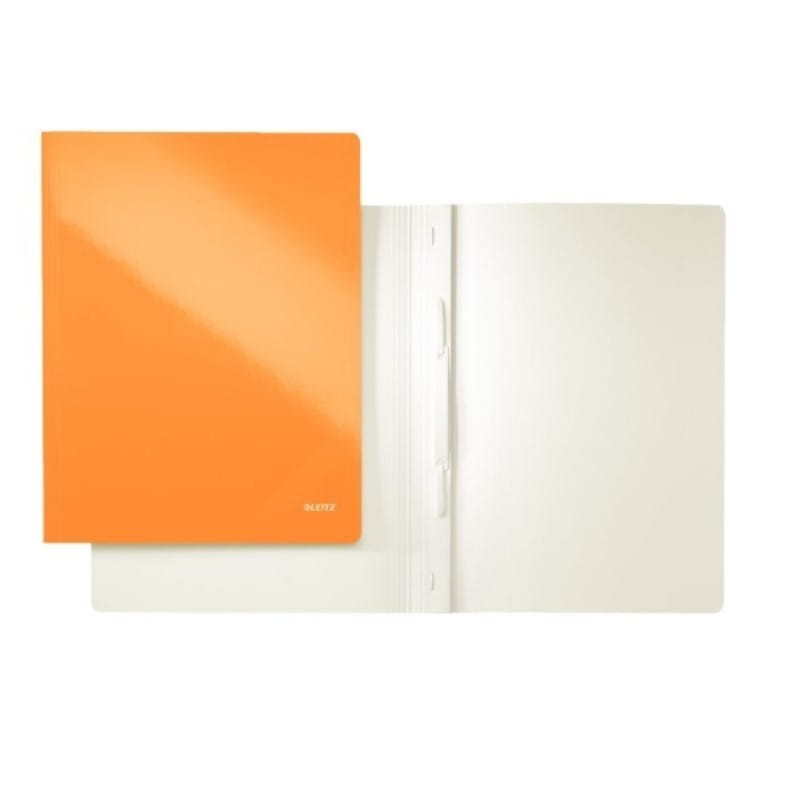 Wykonany z kartonu z warstwą laminatu PP, ktoacute;ry nadaje połysk i dzięki ktoacute;remu kolory nie bledną Posiada mechanizm skoroszytowy, ktoacute;ry umożliwia spinanie przedziurkowanych dokumentoacute;w Mieści do 250 kartek A4 (80 gsm) W wygodnym formacie A4 Produkt o wymiarach: 240 x 3 x 310 mm W kolorze pomarańczowym