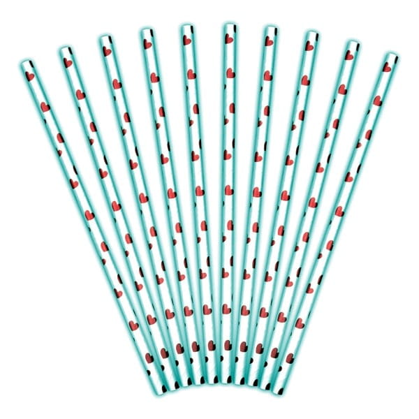 - Opakowanie zawiera dziesięć papierowych słomek w kolorze białym z jasnoróżowymi sercami o długości 19,5 cm każda