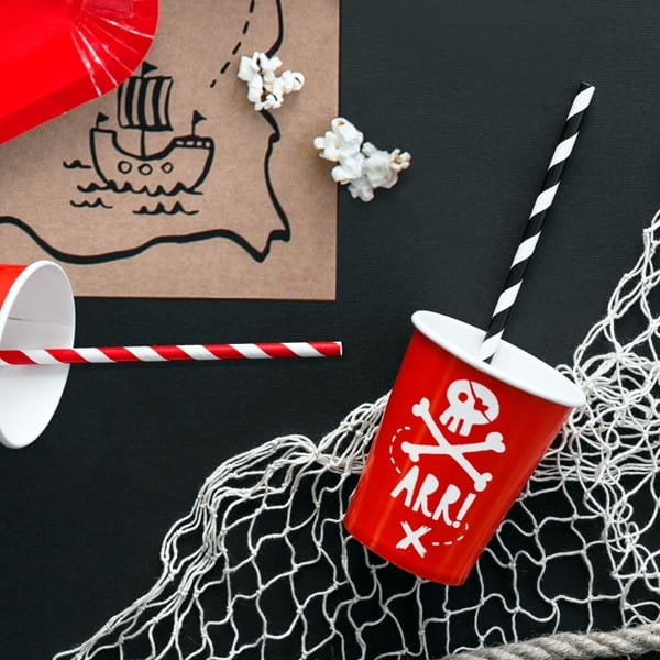 - Opakowanie zawiera dziesięć papierowych słomek w kolorze czerwonym z białymi ukośnymi paskami o długości 19,5 cm każda