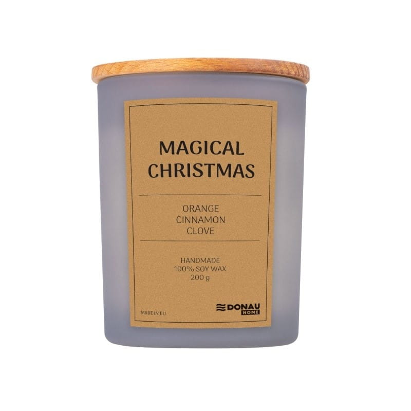 Świeca sojowa w szarym szkle z drewnianą pokrywą 200g DONAU HOME magical christmas 1szt. /45361811-10/