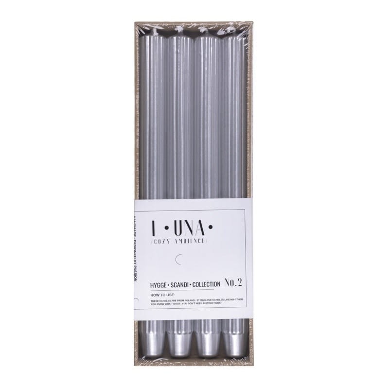 Świeca stołowa długa ryflowana lakierowana 25,0 x 300,0mm DONAU HOME srebrna 4szt. /45335214-19/