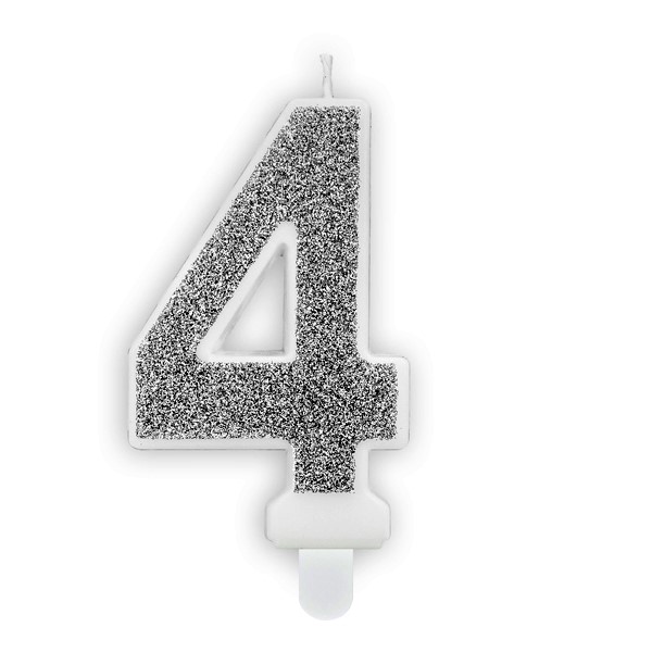 Świeczka urodzinowa cyfra 4 srebrna brokatowa 7 cm 1 szt.