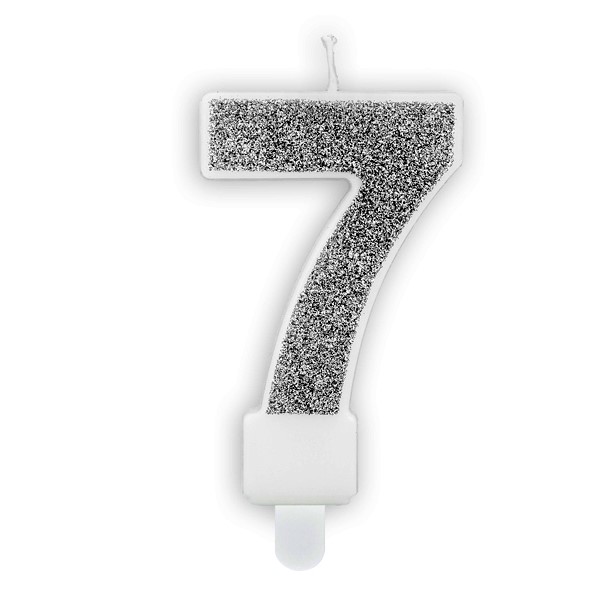 Świeczka urodzinowa cyfra 7 srebrna brokatowa 7 cm 1 szt.