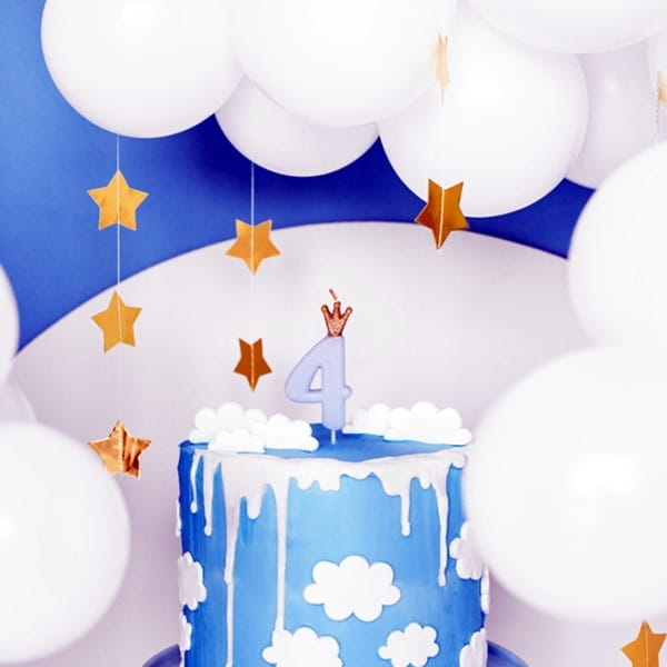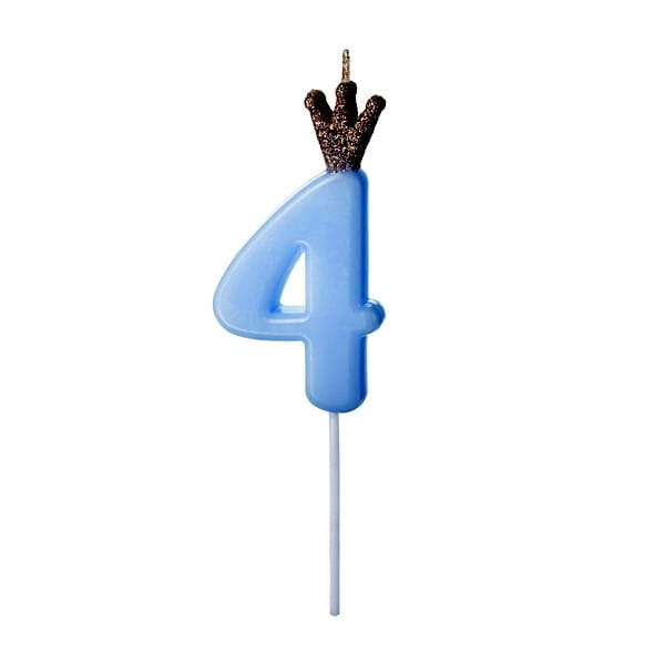 Świeczka urodzinowa 9,5cm PARTYDECO CYFRA "4" jasna niebieska z koroną 1szt.