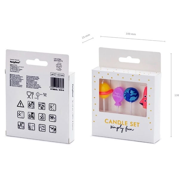 Świeczki urodzinowe 2-3cm PARTYDECO kosmos mix wzorów i kolorów 4szt. /SCS-6/