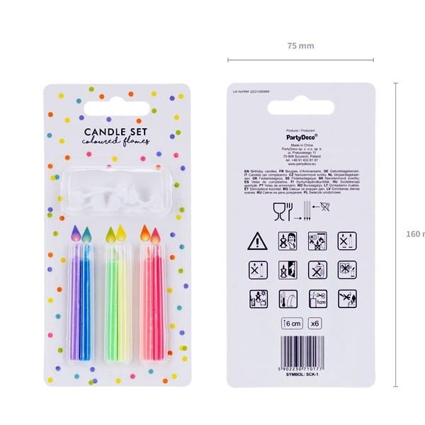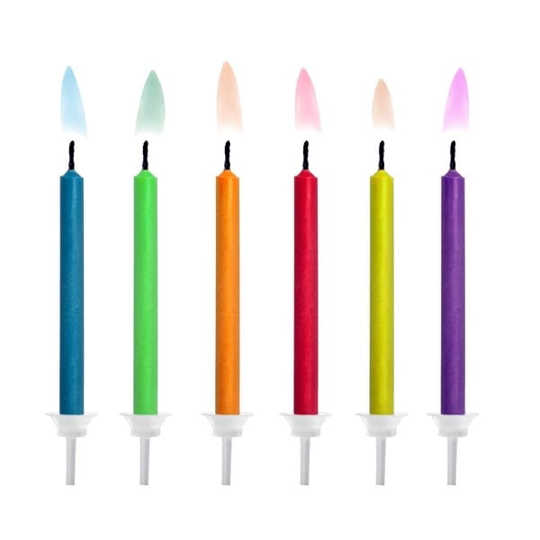 - Świeczki urodzinowe Kolorowe Płomienie to zestaw sześciu kolorowych świeczek, które dodadzą niepowtarzalnego uroku każdej urodzinowej imprezie