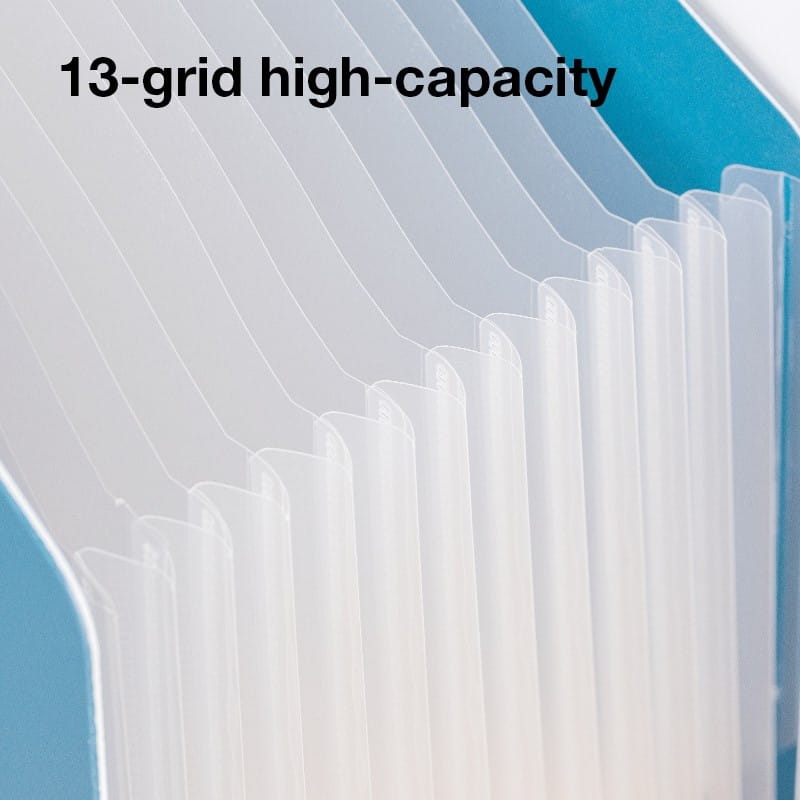 Rozszerzana teczka harmonijkowa w formacie A4, wykonana z wytrzymałego i lekkiego tworzywa PP. Zawiera 12 separatorów, które tworzą 13 przegródek, ułatwiając podział dokumentów według kategorii. Stojąca konstrukcja wspiera sortowanie i przechowywanie papierów w uporządkowany sposób, a opakowanie w folii OPP zabezpiecza produkt.